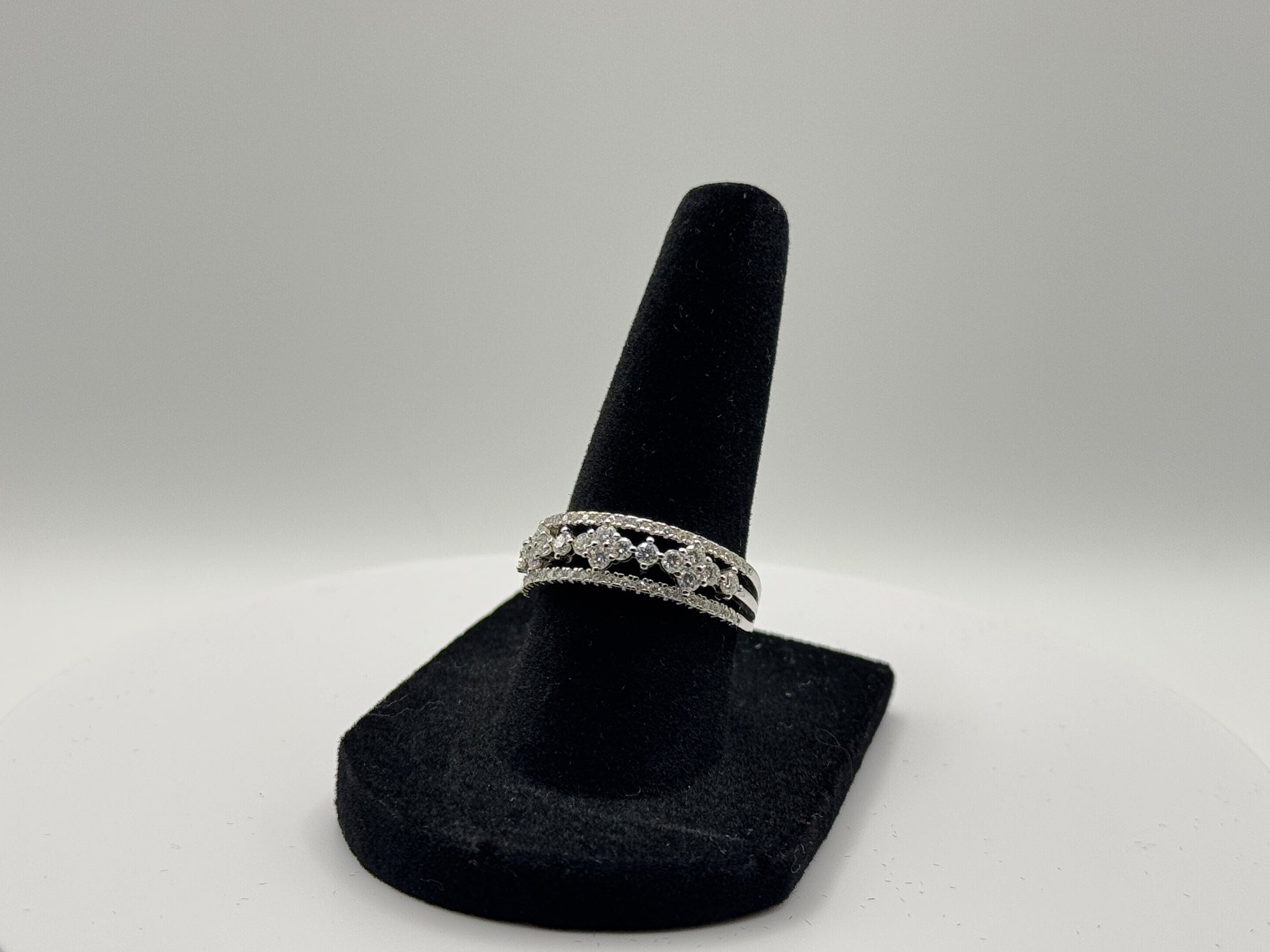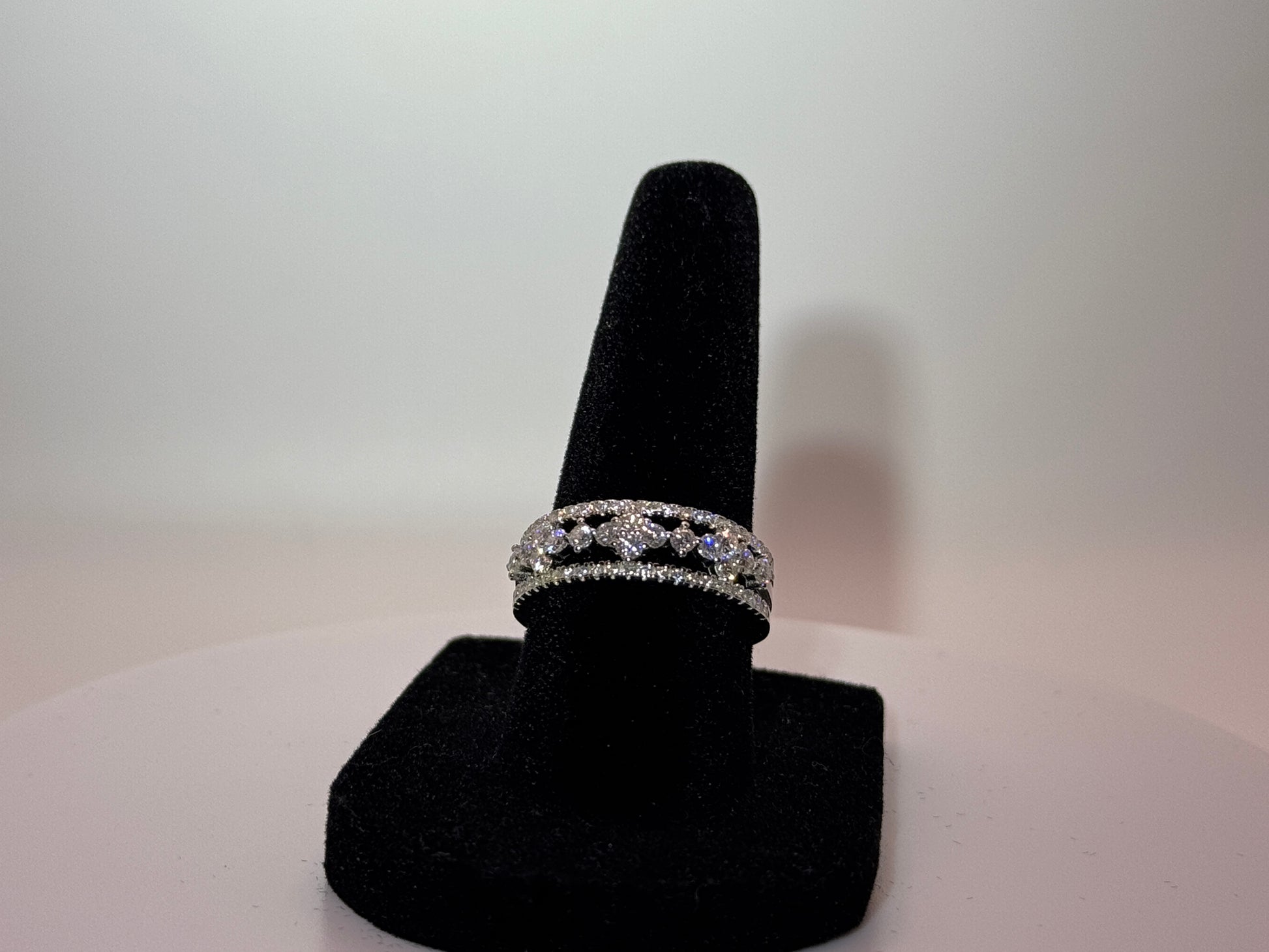 A bold sweep of brilliance, the Celeste Curve Ring captures light from every angle with its elegant arched design. Sixteen dazzling moissanite stones, each about 0.1 carat, create a cascade of sparkle that feels both effortless and unforgettable. Crafted in solid 925 sterling silver, this piece blends striking detail with a graceful silhouette. It arrives in a velvet box, ready to mark a moment or simply elevate the everyday.